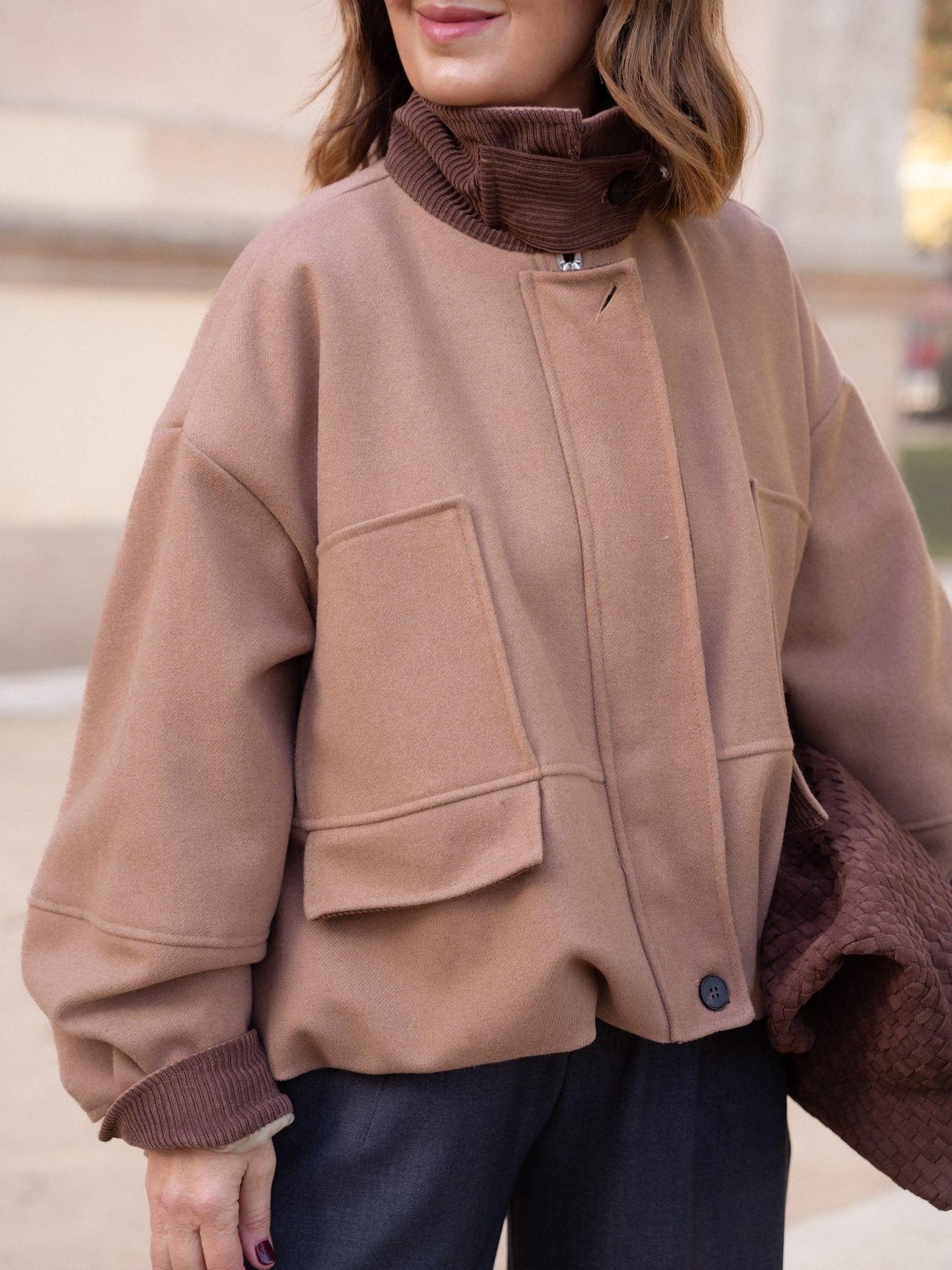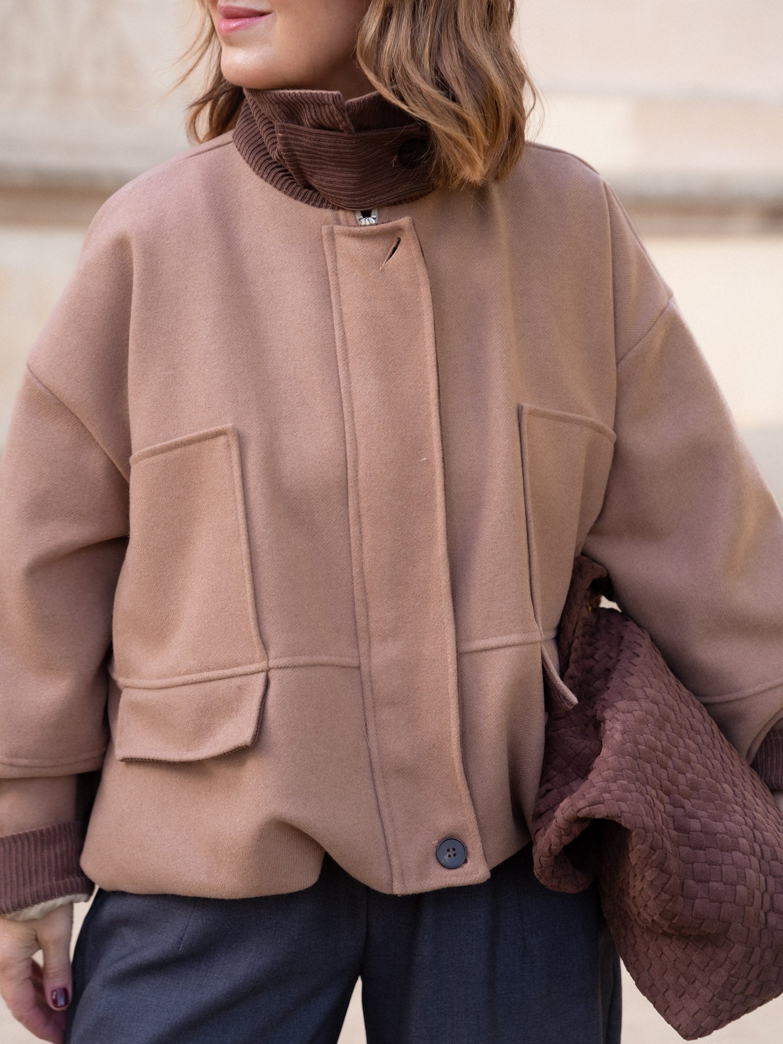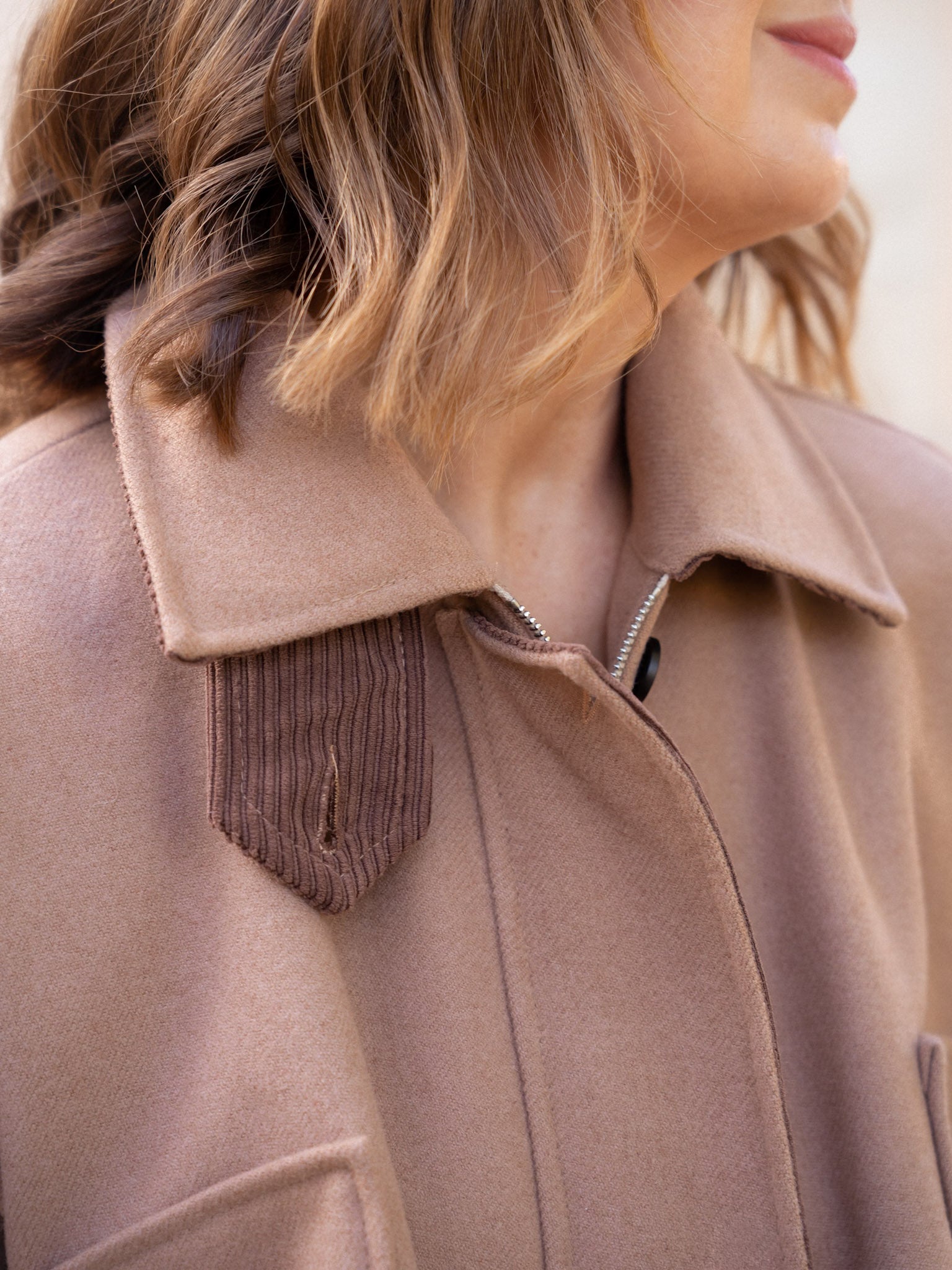 - Cuello solapa con reverso de pana en color chocolate